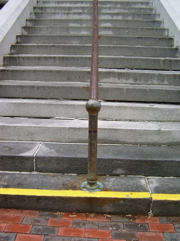 What is the sense of this garish yellow line at the bottom of the courthouse steps? For two hundred years people have been climbing those steps, now all of a sudden there needs to be a safety strip?