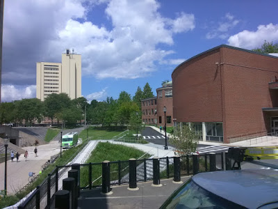 The UMass Grad Research Center as seen from the Integrative Learning Building.